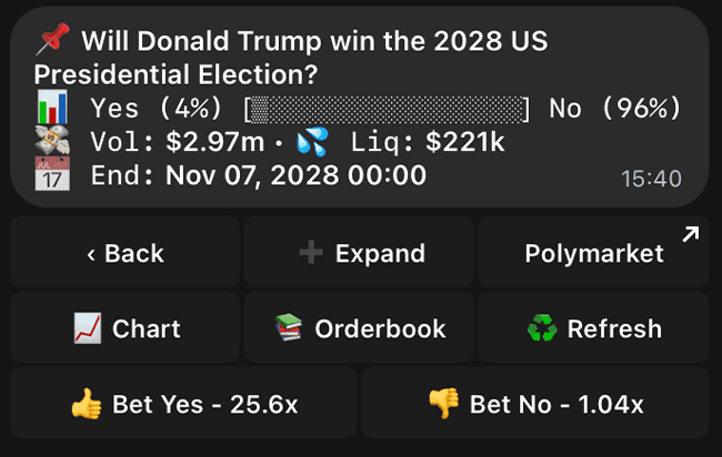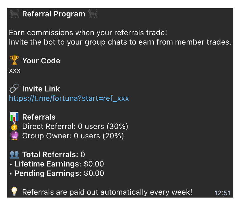 Add Fortuna on Telegram and start trading on Polymarket instantly.